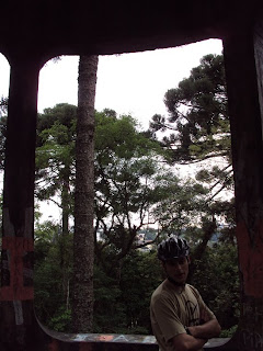 Como estava cedo não tinha muita gente no parque. Fomos fazer algumas trilhas , a primeira foi a que tem o mirante abandonado em meio as árvores, subimos nele mas as árvores impedem qualquer visual da região. Na sequência fomos até as trilha próximo da Manoel Ribas, essas são mais complicadas, encontramos bastante lixo, muitas teias de aranha e até uma pessoa dormindo (?) no meio da floresta. Mas mesmo assim foi bacana, deu pra rir um bocado e pedalar bastante nas trilhazinhas.